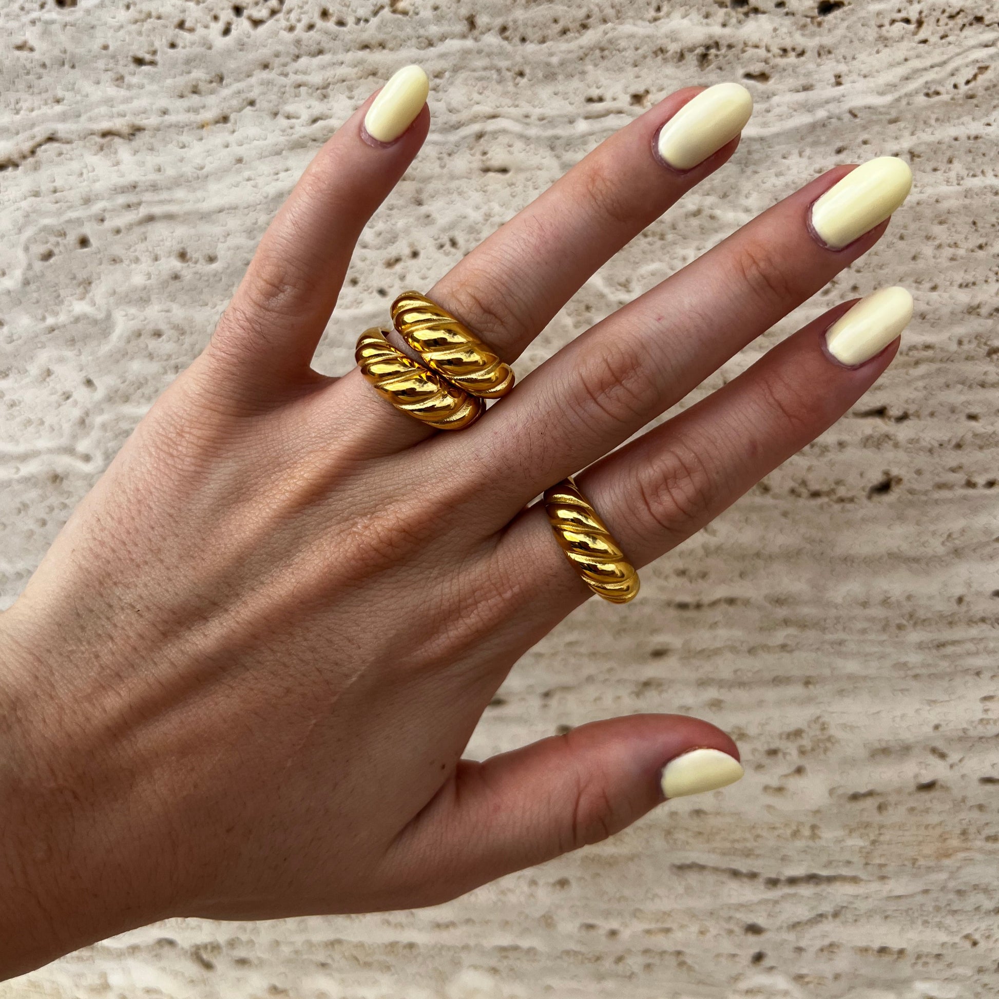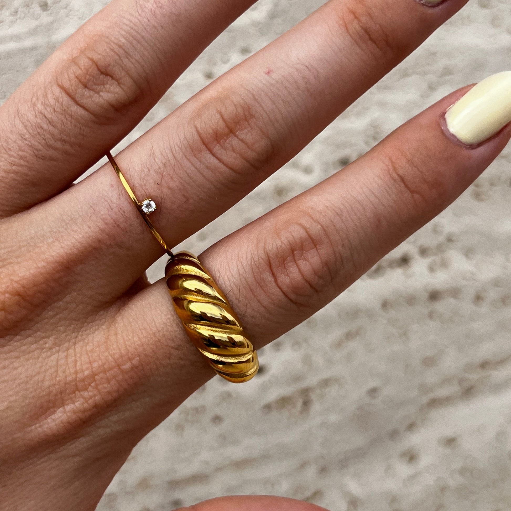 Anillo en acero inoxidable e hipoalergénico, resistente al agua.
