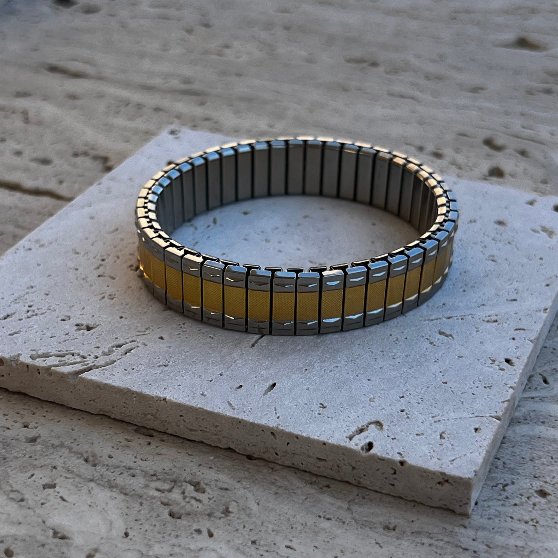 Pulsera hecha en acero inoxidable, resistente al agua.